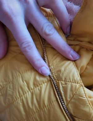 -chybička: z vnútornej strany ako je zips sú 2 dierky viď fotka (zasekol sa tam zips), keďže je to zvnútra a za zipsom pri nosení to nie je vôbec vidieť